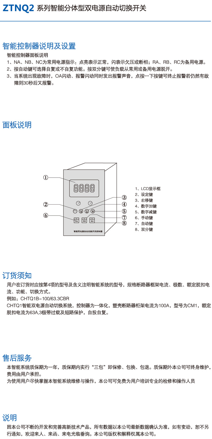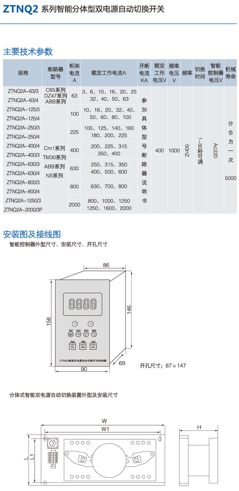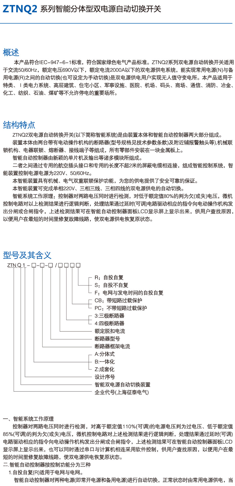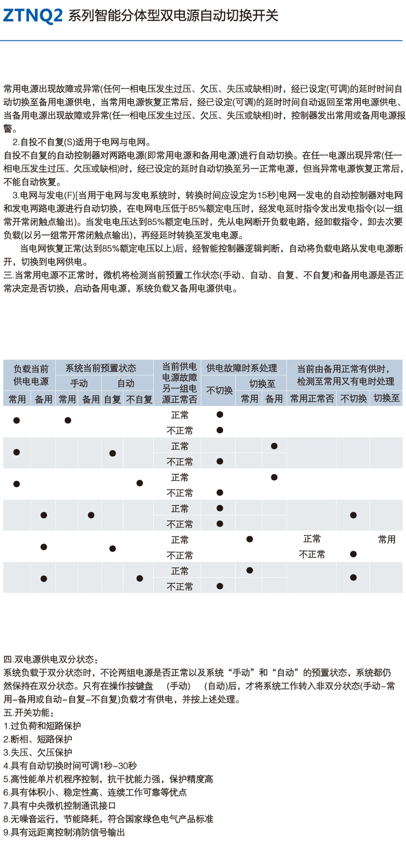 ZTNQ2系列智能分體型雙電源自動切換開關(guān)